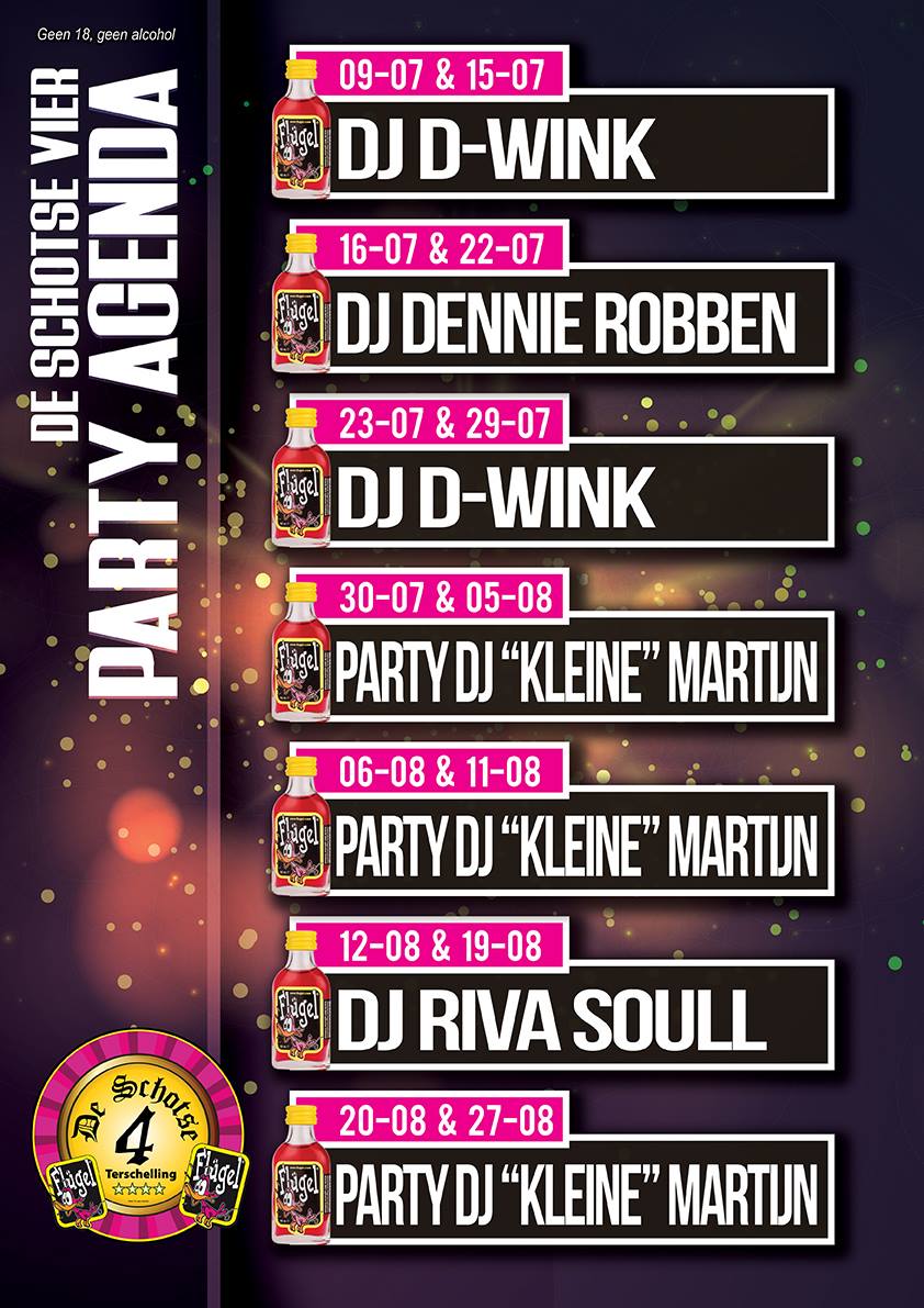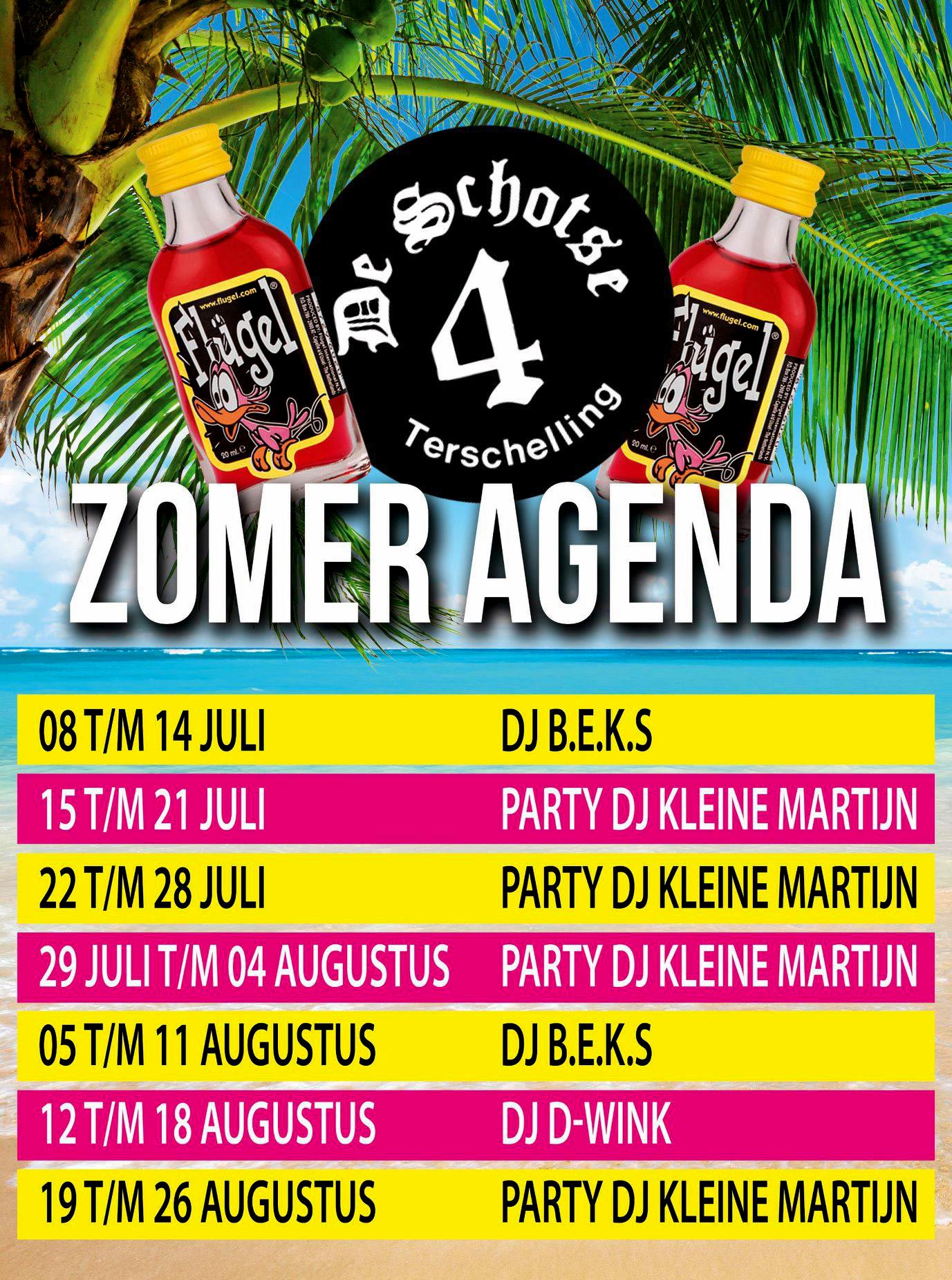 Wij zijn ieder dag open tot 02:00 uur. Toegang vanaf 16 jaar. Het zomerprogramma loopt van 9 juli t/m 27 augustus. www.SchotseVier.nl